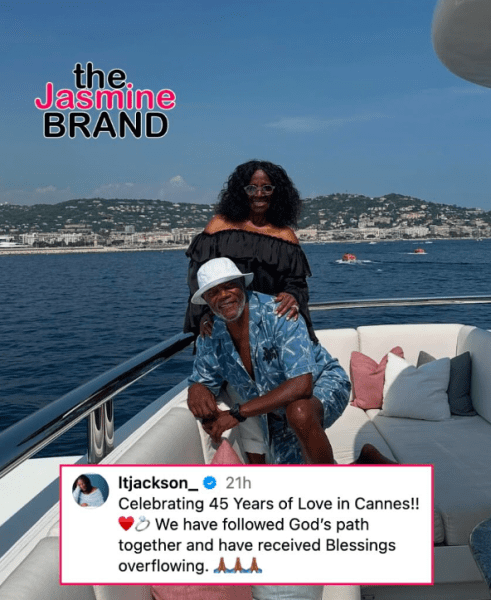 Jackson posted photos of himself and Richardson online with the caption: “Celebrating 45 Years of Love in Cannes!! ??? We have followed God’s path together and have received Blessings overflowing. ??????”