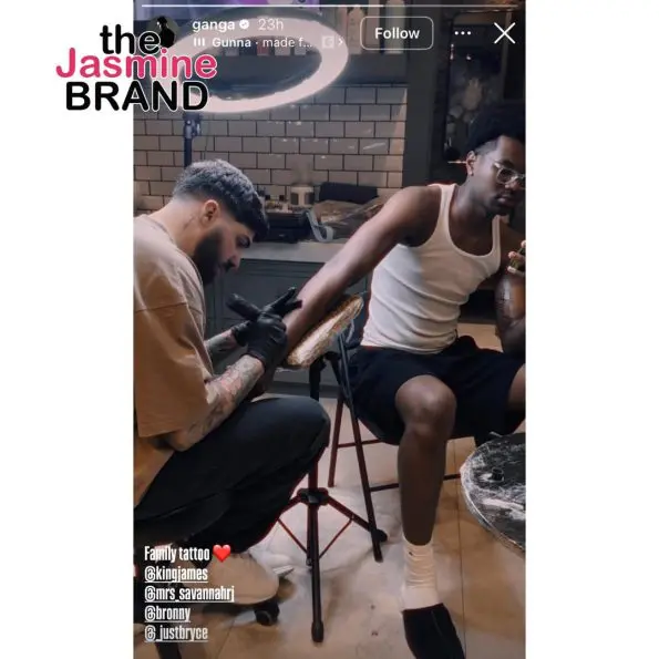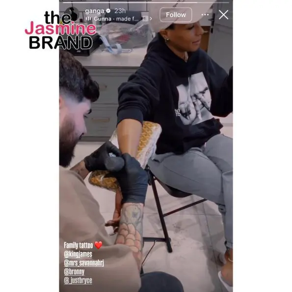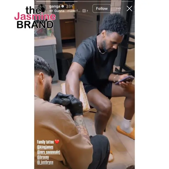 Ganga shared footage of LeBron, his wife Savannah, and sons Bronny and Bryce getting inked on their right forearms. The design of the tattoos remains undisclosed.
