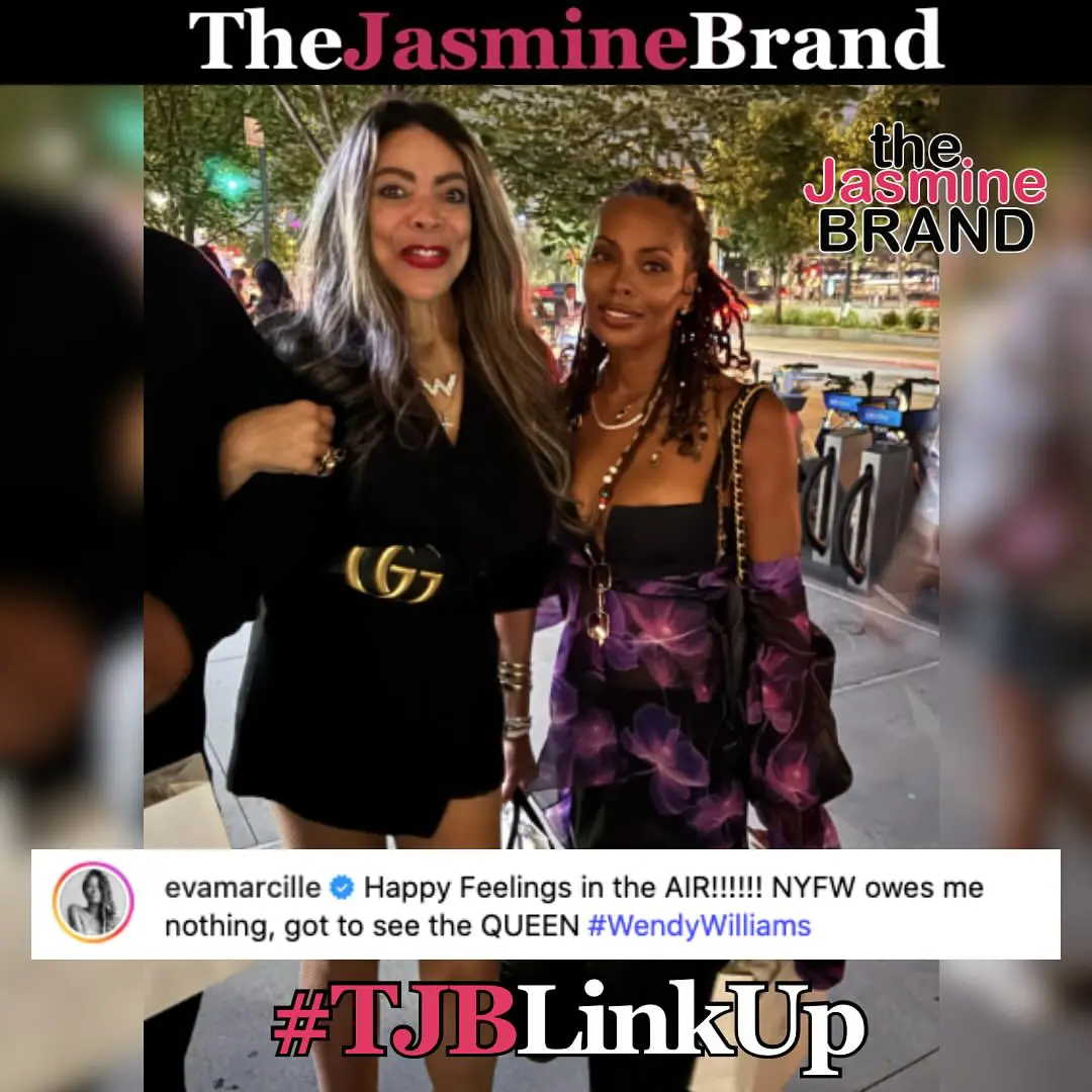 Actress and #RHOA alum #EvaMarcille shared a pic with the former TV host, noting that NYFW owes her nothing following the rare run-in with Wendy. #TJBLinkUp
