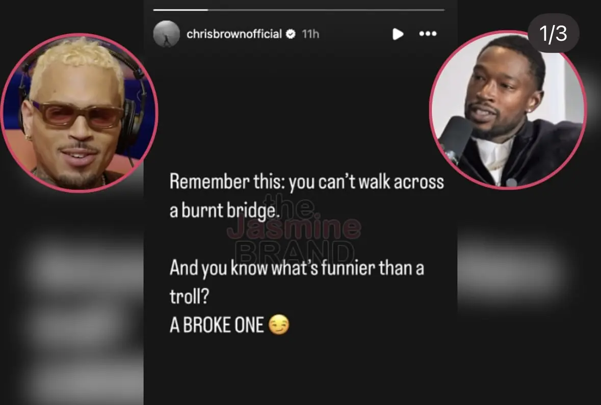 Appearing to react to Kevin breaking down in tears during a podcast interview as he revealed he’s on EBT and claimed CB made “90 whatever million” from his #BreezyBowl tour, Chris said via his IG Story, “Remember this: you can’t walk across a burnt bridge. And you know what’s funnier than a troll? A BROKE ONE.”