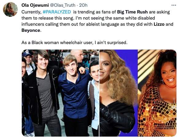 Lizzo & Beyoncé Trend On Twitter After Social Media Users Debate Racism In Ableist Community Following Lack Of Outrage Over Boy Band Big Time Rush’s Upcoming Song ‘Paralyzed’
